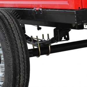 Remorca pentru motocultor are un scaun confortabil, dotat cu o cutie pentru depozitat sculele, suspensie pe foi de arc si roti mari pneumatice de 5.00-12.